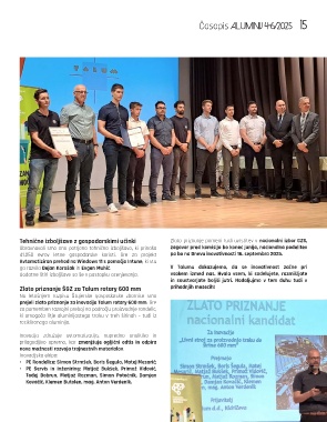 Tehnične izboljšave z gospodarskimi učinki Zlato priznanje pomeni tudi uvrstitev v nacionalni izbor GZS,